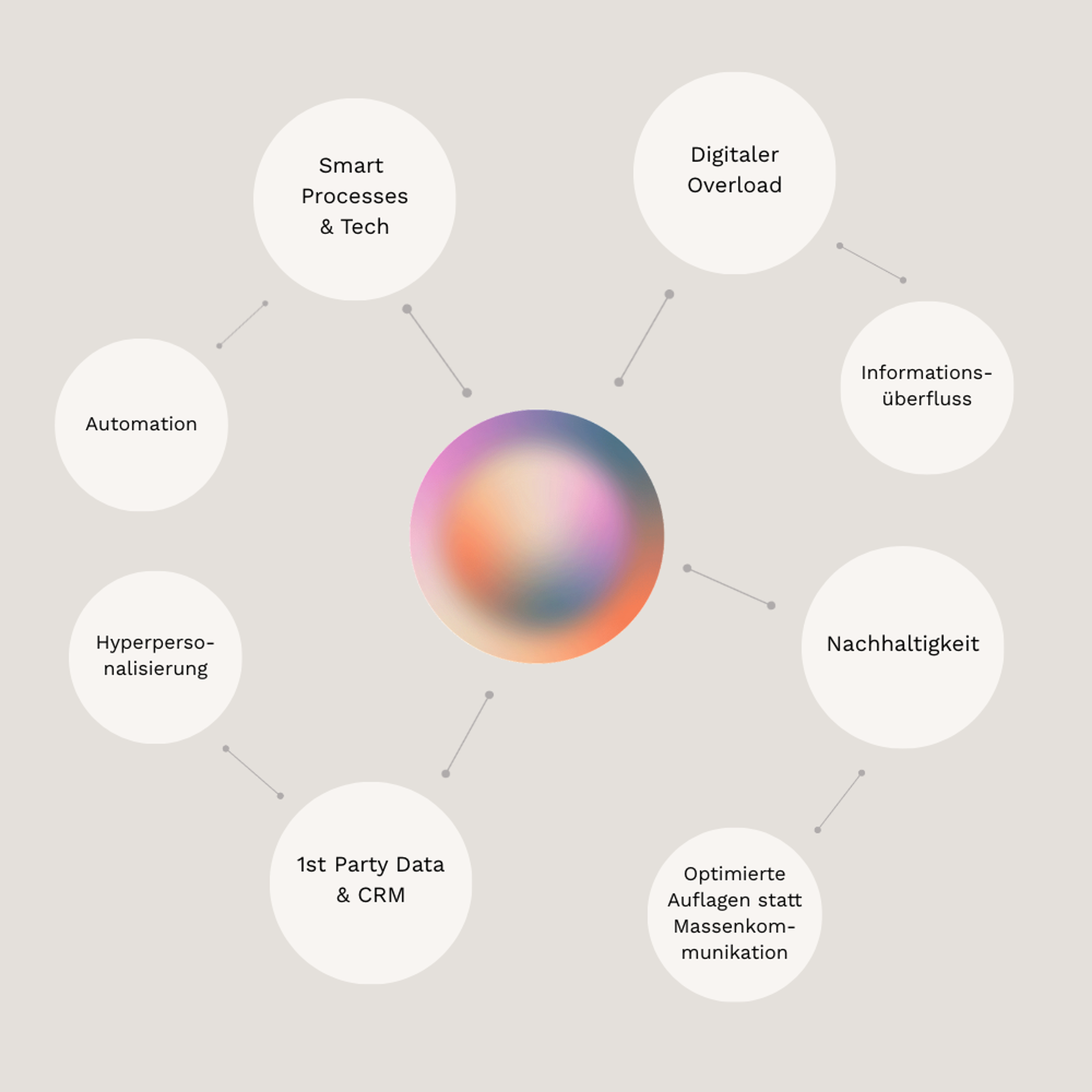 Unser Anspruch ist es, Kundenkommunikation messbar erfolgreicher zu machen. Deshalb setzen wir auf datengetriebene Prozesse, intelligente Automatisierung und eine enge Verzahnung aller relevanten Marketingkanäle.